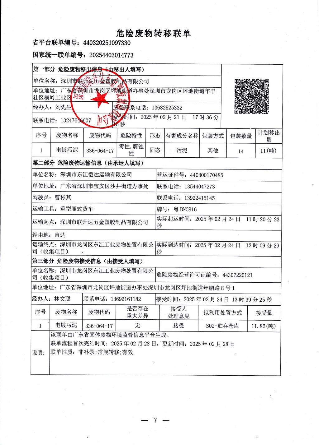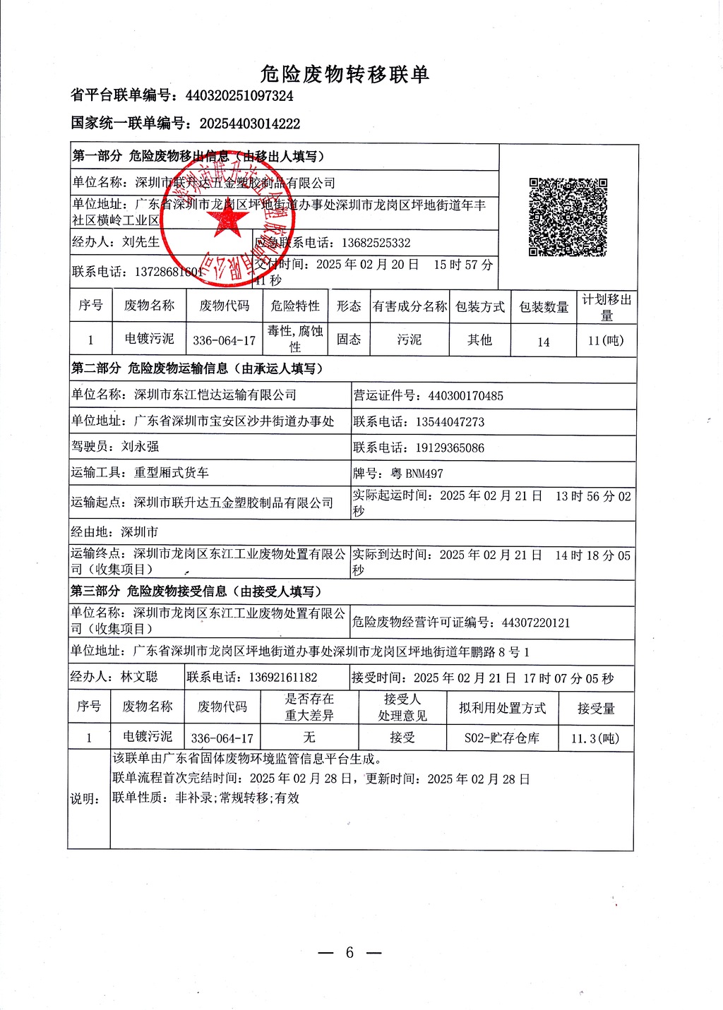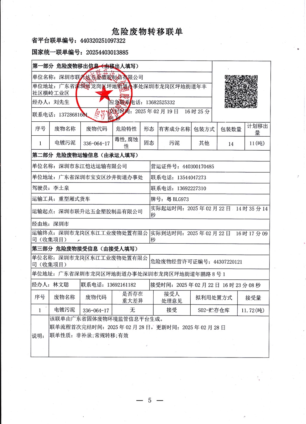 危险废物转移联单