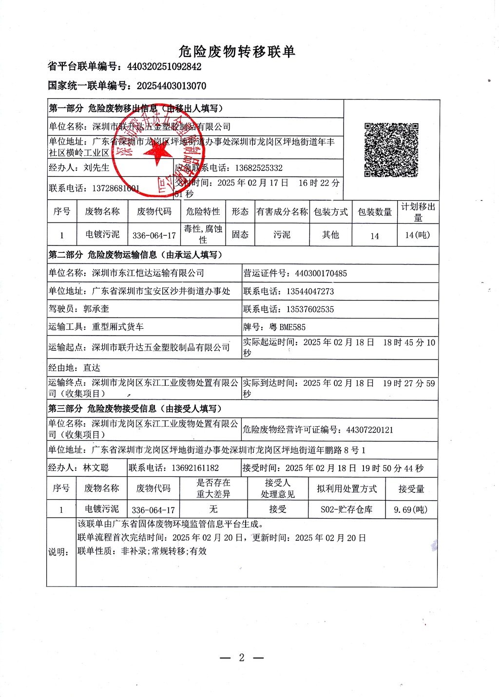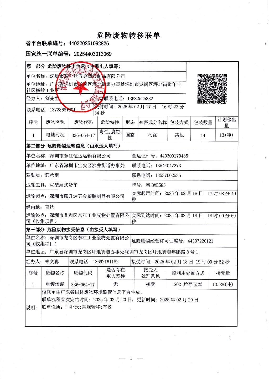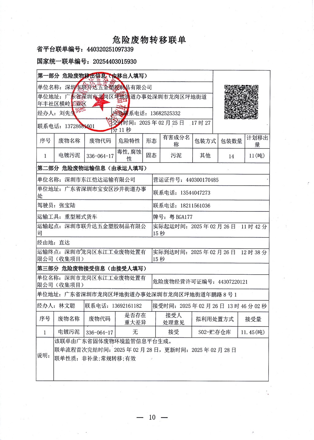 危险废物转移联单