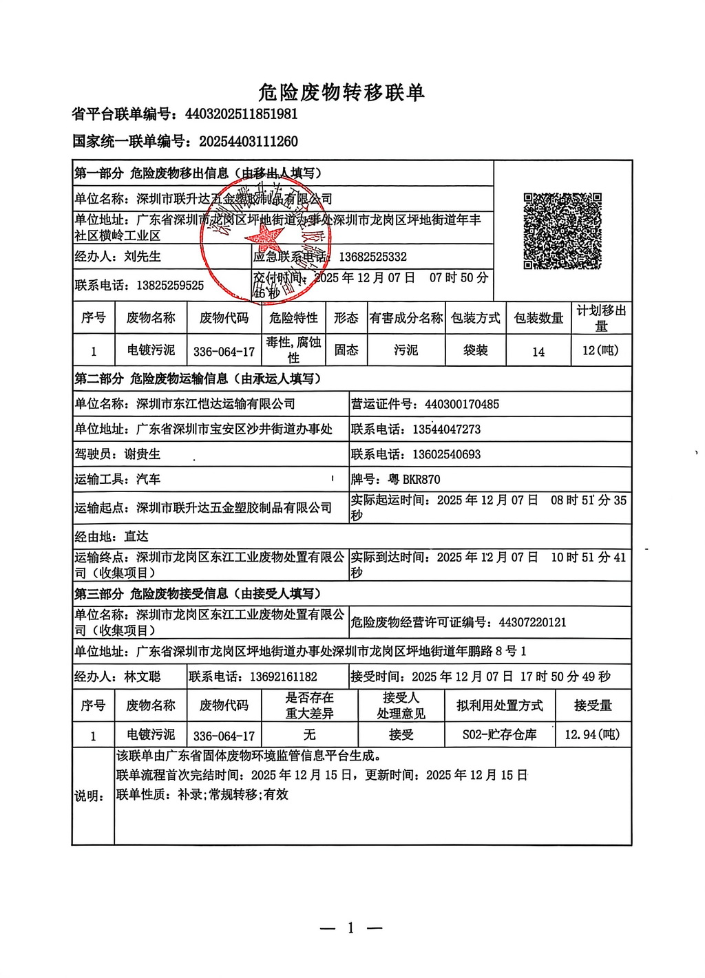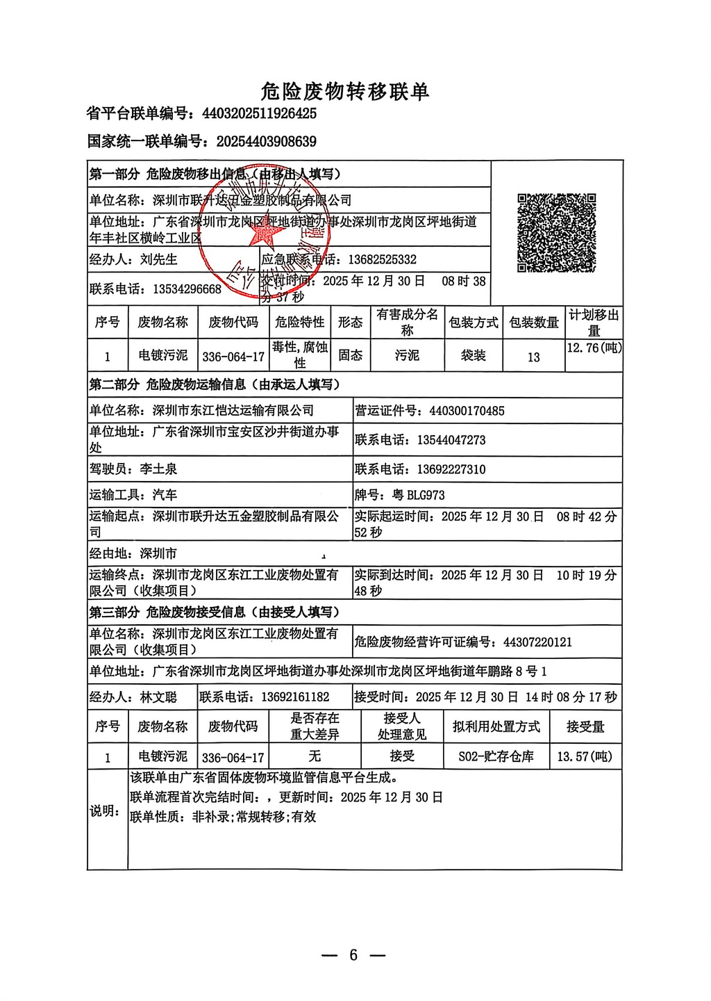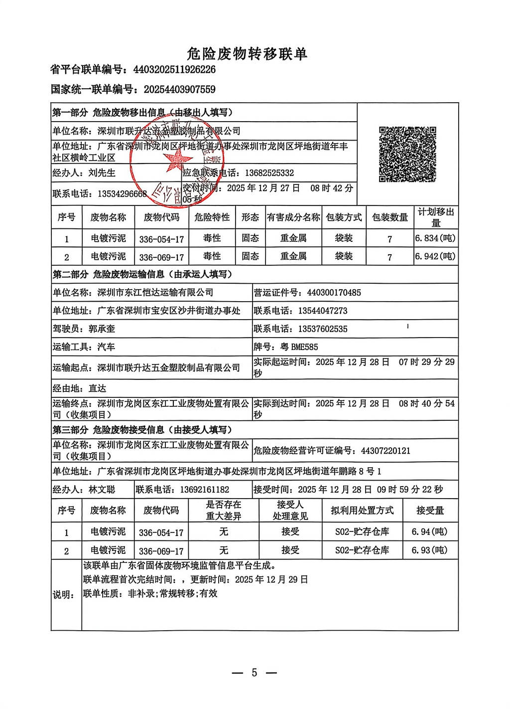 危险废物转移联单